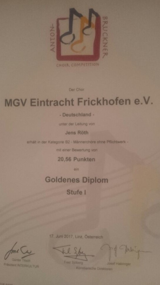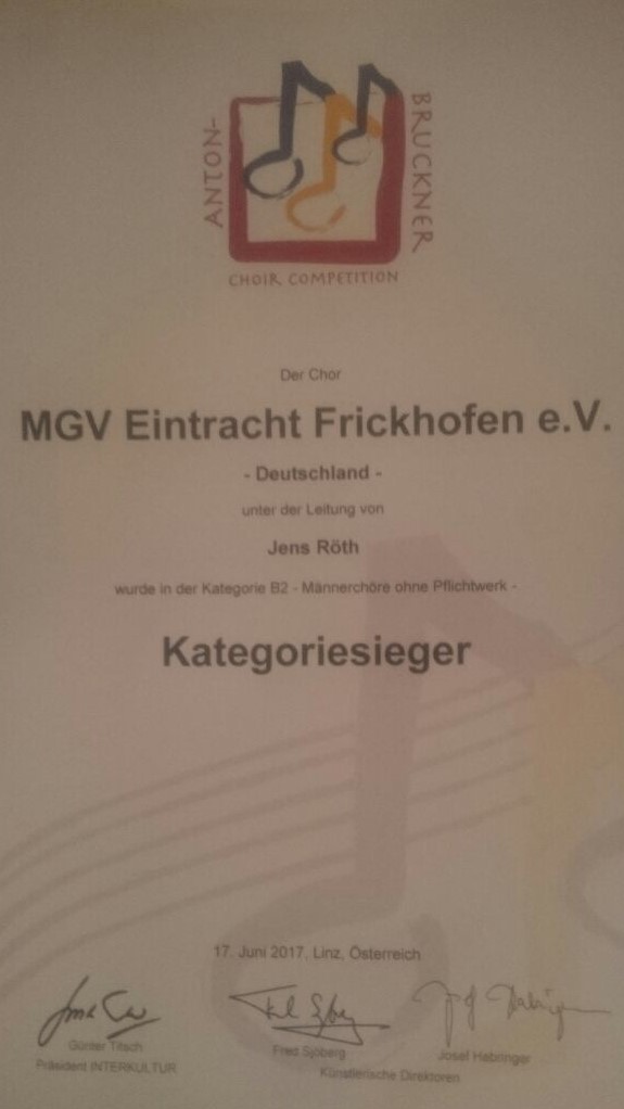 6. Int. Anton Bruckner Choir Competiton and Festival - Participant: MGV "Eintracht" Frickhofen e.V. 1885