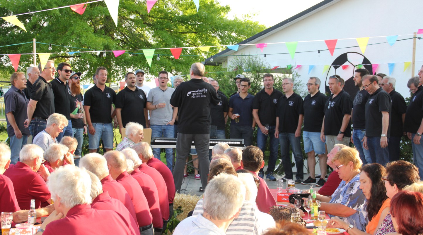 Der MGV "Eintracht" Gaudernbach unter Leitung von Achim Friedrich hatte Wein- und andere Trinklieder mit im Gepäck. Die waren so bekannt, dass leise die anderen Sänger mitsangen. So herrschte ein leises Raunen und Summen im Hof, welches recht toll anzuhören war.